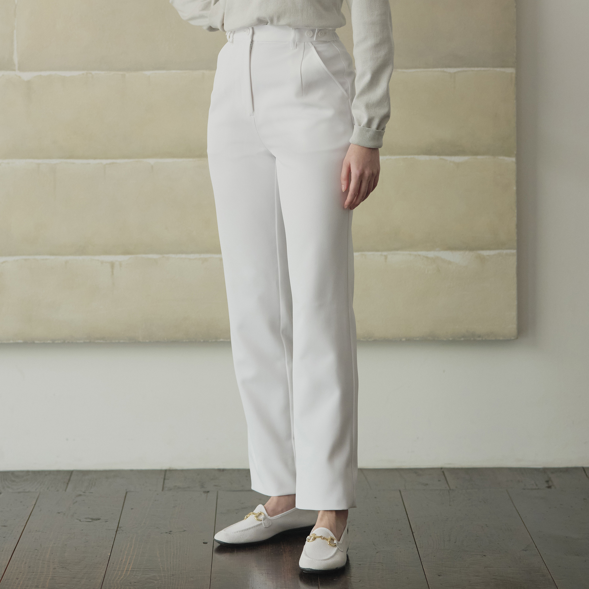 スタイリッシュな美脚シルエットのストレートパンツ。