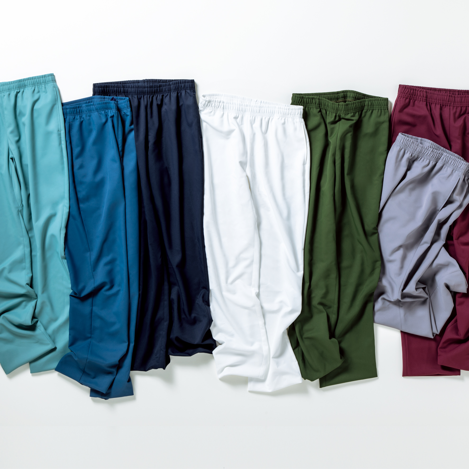 コンフォタブルな総ウエストゴム仕様のスクラブパンツ。