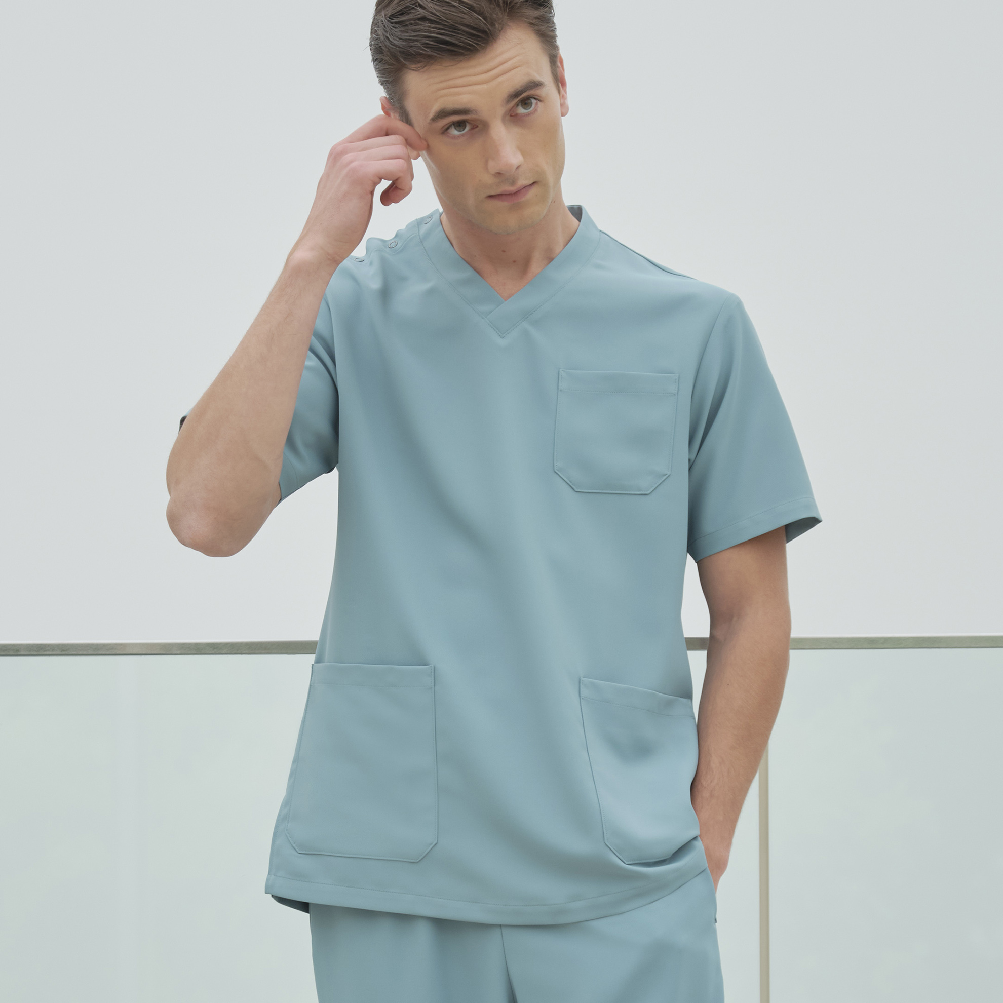 シャープなVネックのカッティングがポイントのドクタースクラブ。