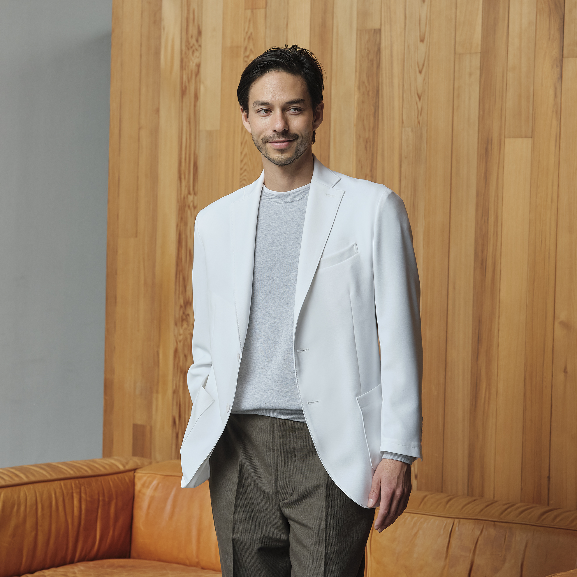 高い支持を得ているテーラードのような着用感はそのまま、軽いストレッチ素材で快適性をアップ。