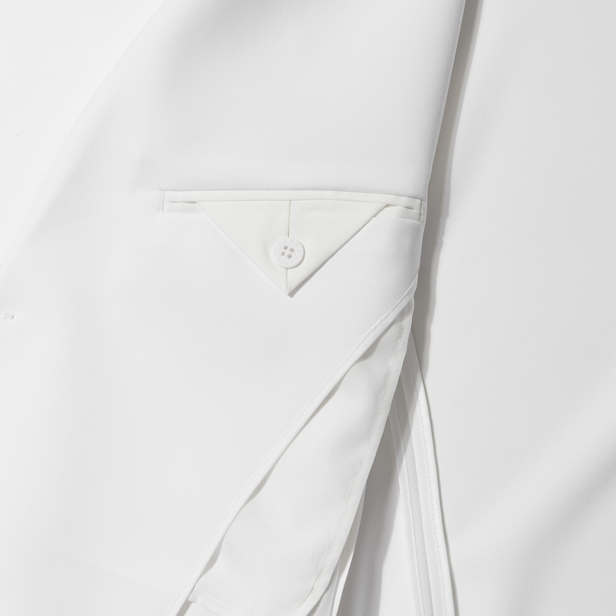 袖口は開閉可能な4釦本切羽仕様で、高級感のある見た目と腕まくりのしやすさを両立。