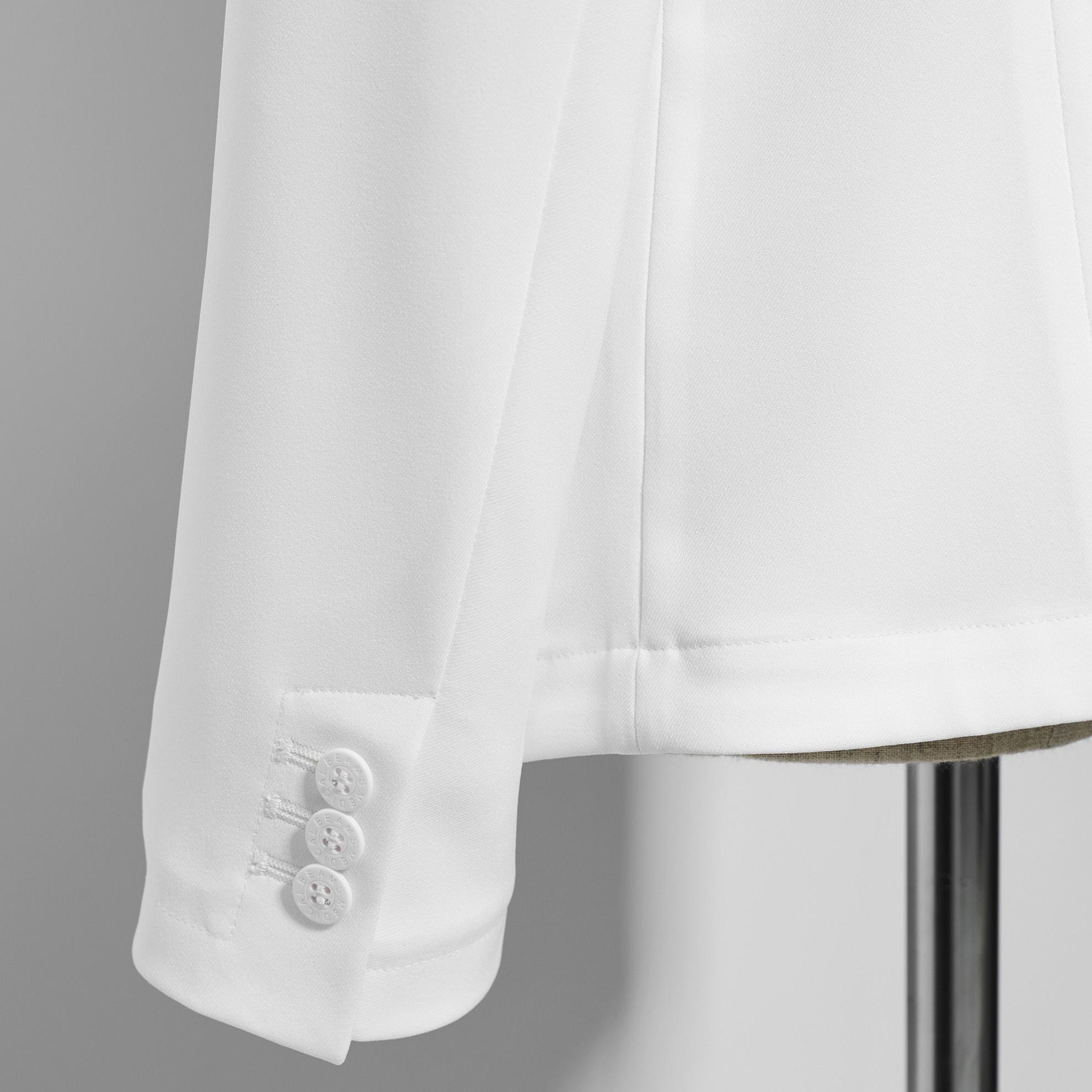 袖口は開閉可能な3釦本切羽仕様で、高級感のある見た目と腕まくりのしやすさを両立。